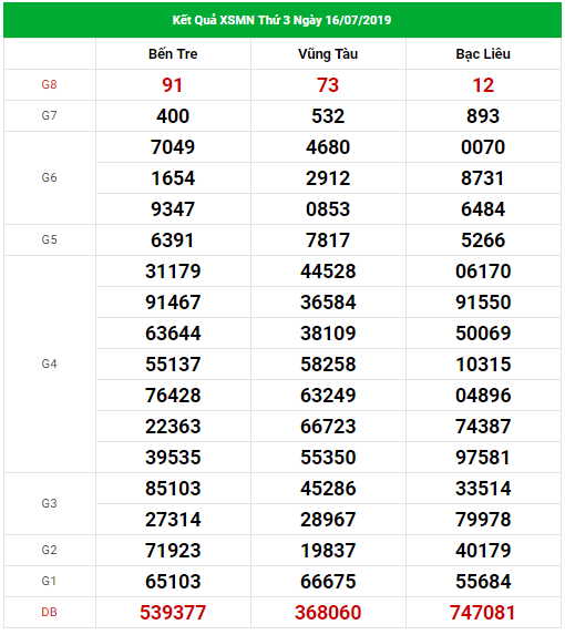 Cùng thống kê dự đoán kết quả xổ số miền nam – KQXSMN của ngày hôm nay thứ ba 23/7 cùng với việc phân tích thống kê thống kê XSMN của ngày hôm qua và thống kê XSMN ngày 23/7/2019 các tỉnh Bến Tre, Vũng Tàu, Bạc Liêu.